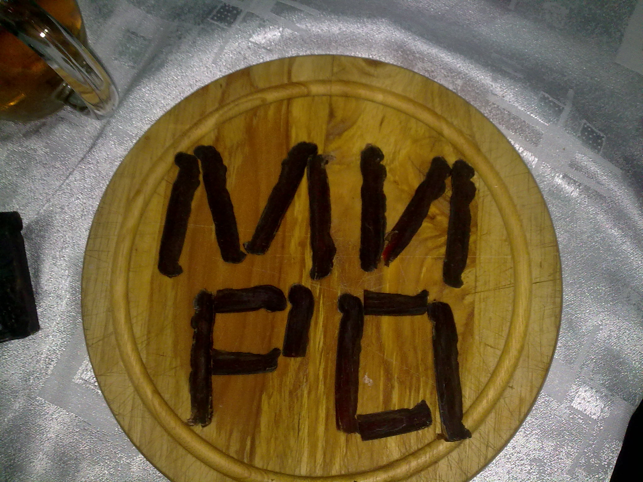 Гледах по търновския сбор на сергиите пишат име с ориз .. и разни подобни глупости, та рекох да си го напиша и аз. След упорития труд за надписа си го изядох де