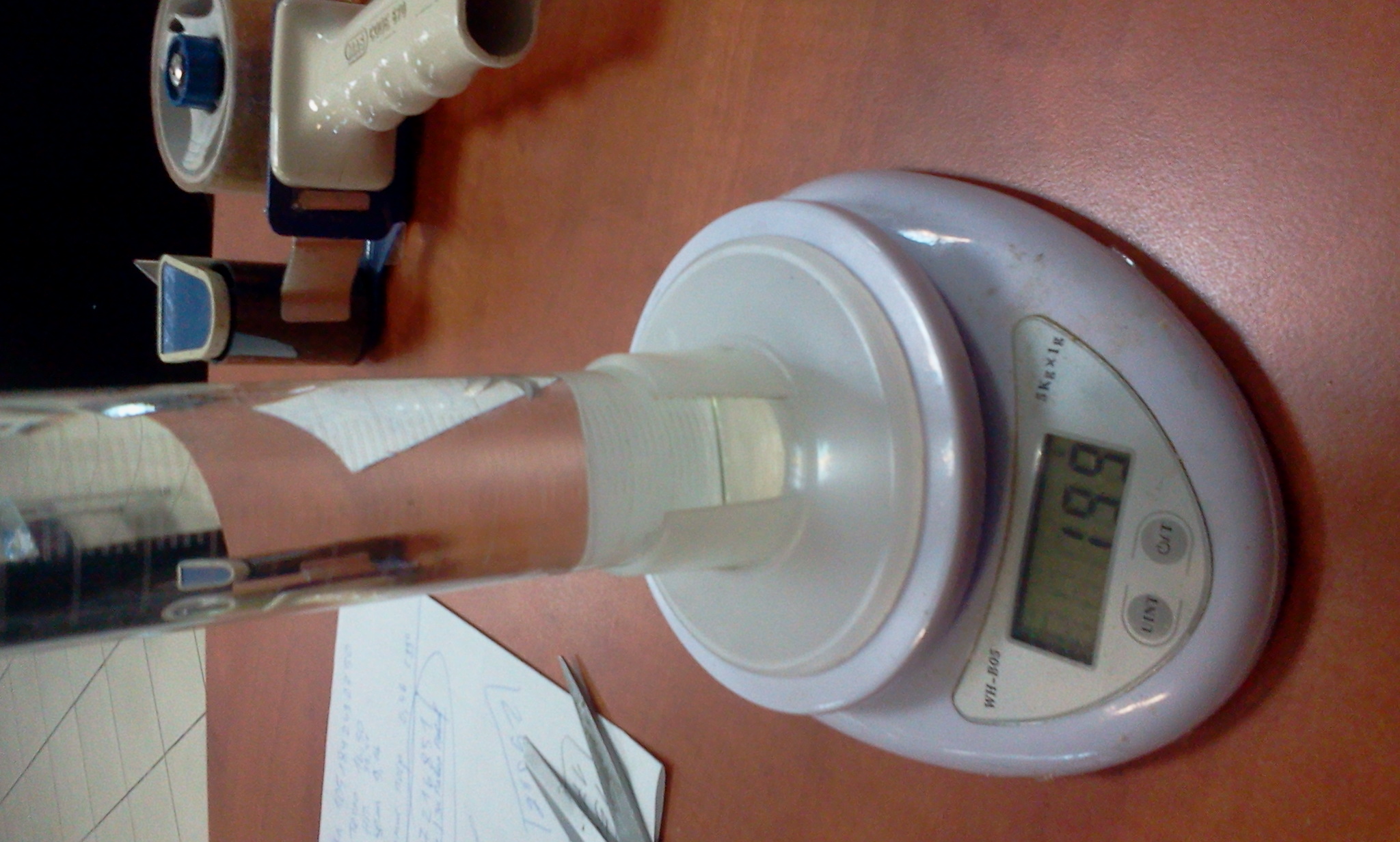 Разреждам разтвора като добавям вода до 500гр , но не съм точен и става общо 538гр.
