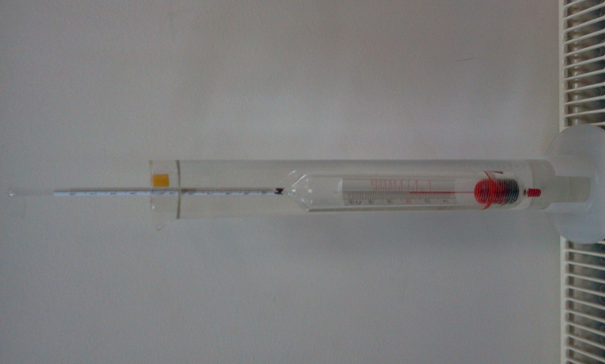 Вадя тежката артилерия - най-прецизното с което разполагам - специален платомер в диапазона от 0 до 10% с деления през 0.1% и термометър с корекция.