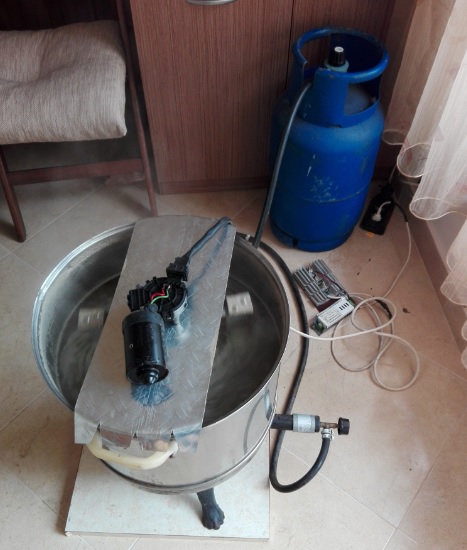 системата ми за озахаряване промиване и охлаждане е изцяло мое дело и дава добри резултати, засега правя само светла бира с Pale Ale Malt (Светъл малц) - Вайерман Германия, HALLERTAU Trad. - Ароматичен хмел Халертау и дрожди Nottingham Ale , 5кг малц накисвам с 15л. вода и промивам с 20л. след варенето охлаждам около 23-24 л. пивна мъст.За затопляне на водата и за варене използвам казан от стара пералня РИГА , варя на газ и съм приспособил моторче от чистачки на 12v по идея на друг колега от форума.Изгубих снимките на казана но тези дни ще варя пак и ще направя нови.
