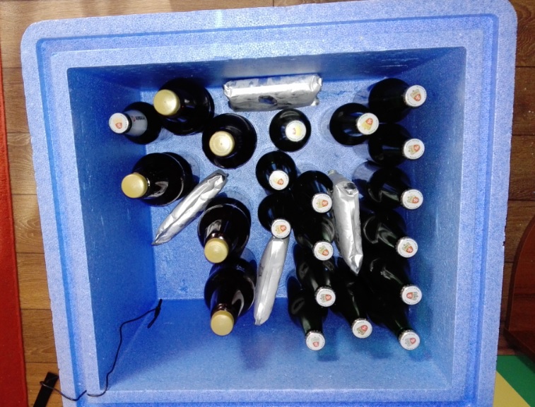 Докато си купя хладилник, които да е само за отлежаване на бирата използвам хладилна кутия и охладители, температурата първоначално е 6гр. и за 2-3 дни се повишава до 9 след което сменявам охладителите.