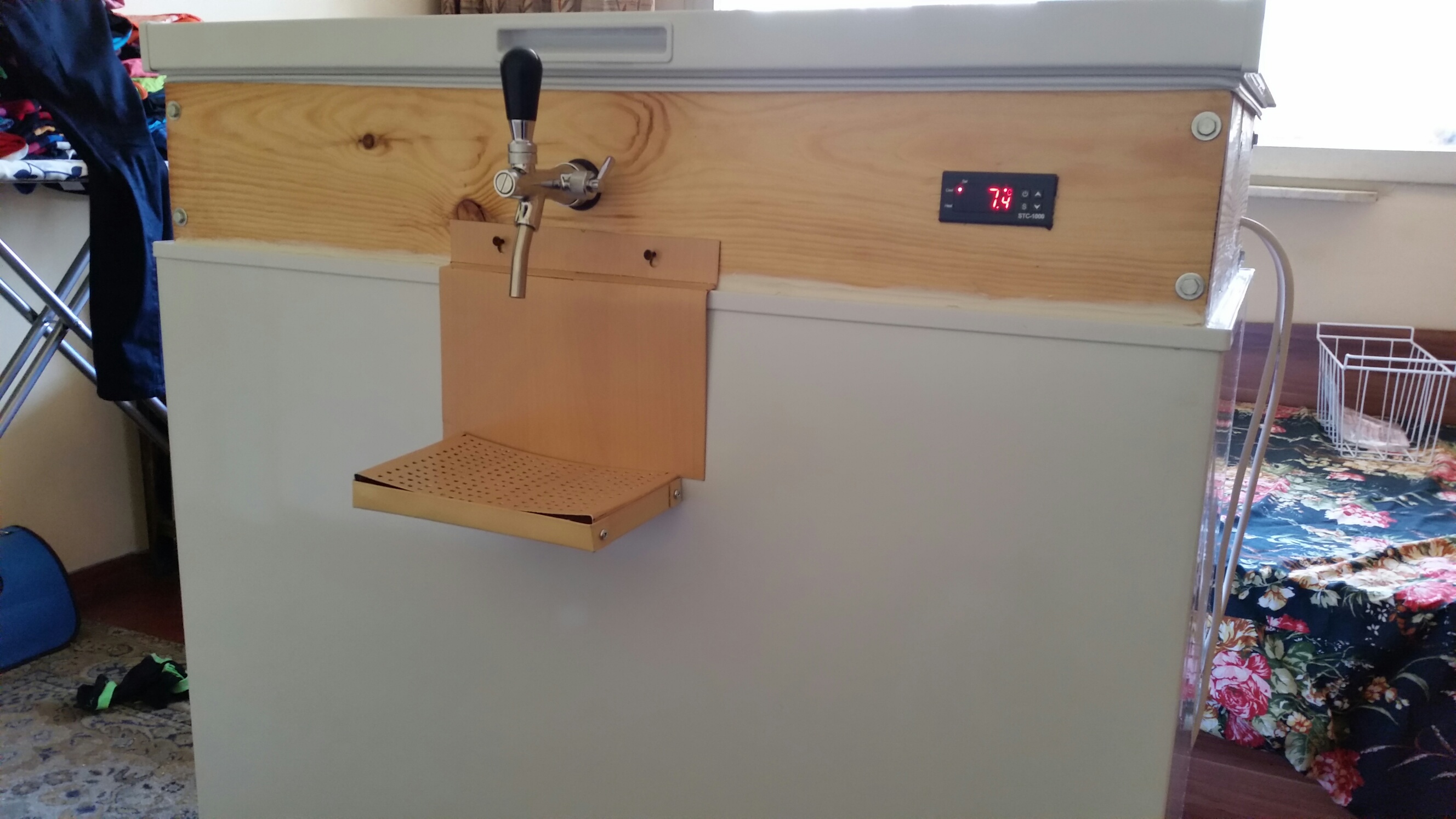 Почти е сглобен и моя кегератор - ето снимка до къде е стигнал :) утре ще е напълно готов. Това в дясно от крана е термо контролера който Ицо (амебата) показа (тестван е)
