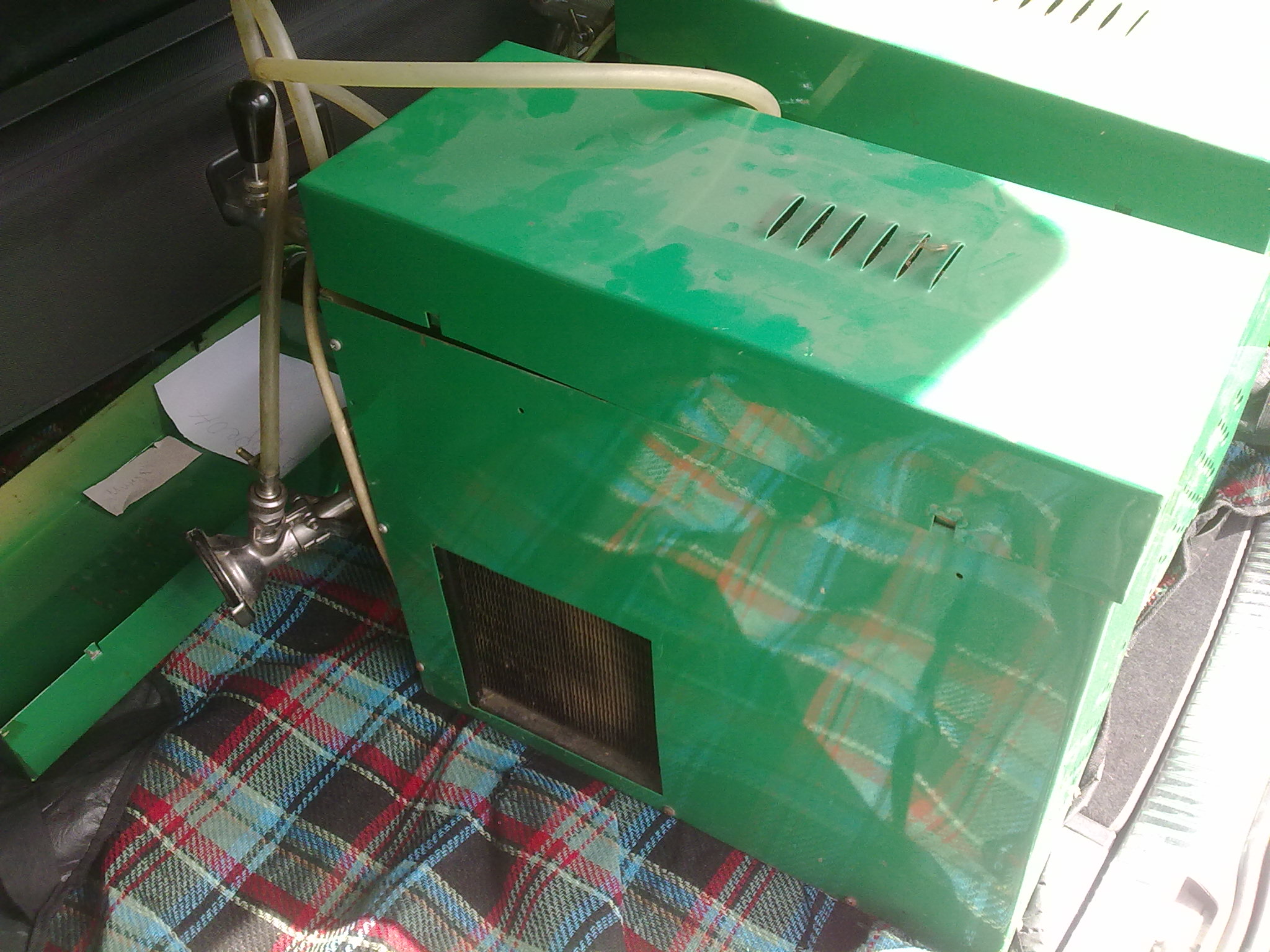 Първите варки ги ферментирах в стъклени и поликарбонатни дамаджани,с водни затвори.Сега ,съм привърженик на отворена ферментация-имам няколко пласмасови съда (100 л) (за хранителни цели-ВАЖНО Е!)в които ферментира.Отлежава в30л кегове на Загорка-80 лв.депозит-изпихме Загорката и наливаме домашна.Прилагам и снимка на инсталацията за наливна бира (сглобена ,second hand-само охладителя,другите джаджи са нови-MicroMatic-Продават се от "Айс текник).