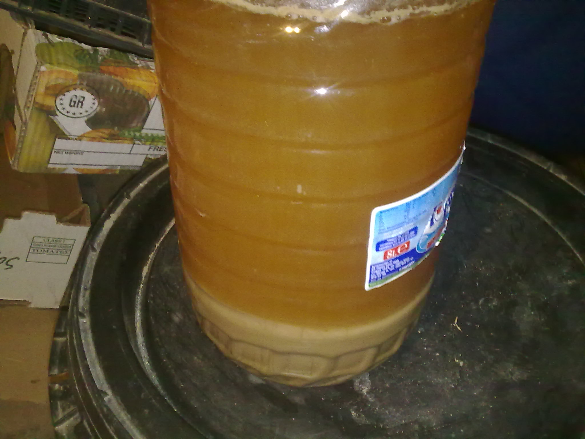 Пак изненада тубата ми от минерална вода е едва 8 л. а бозичката излезе има няма 7 л. Охладих прелях през бинт , защото няма тензухче с фунийката бавно бавно, а през това време се охлажда. На 30-31 гр. сложих дрожди, като преди това ги разтворих за 10 мин в една чашка. И сега потен , няма бира, занесох бутилчицата в мазето и лекинки развих капачката като стисна лекинко да цъска, защото не ми се търсеше иглата за катетър да я боцна и маркучето във водата , но утре сутрин. Утрото е по мъдро от вечерта. И така убих 6 часа, пък да видим като се утаи мътилката дали ще има 5л. бира.