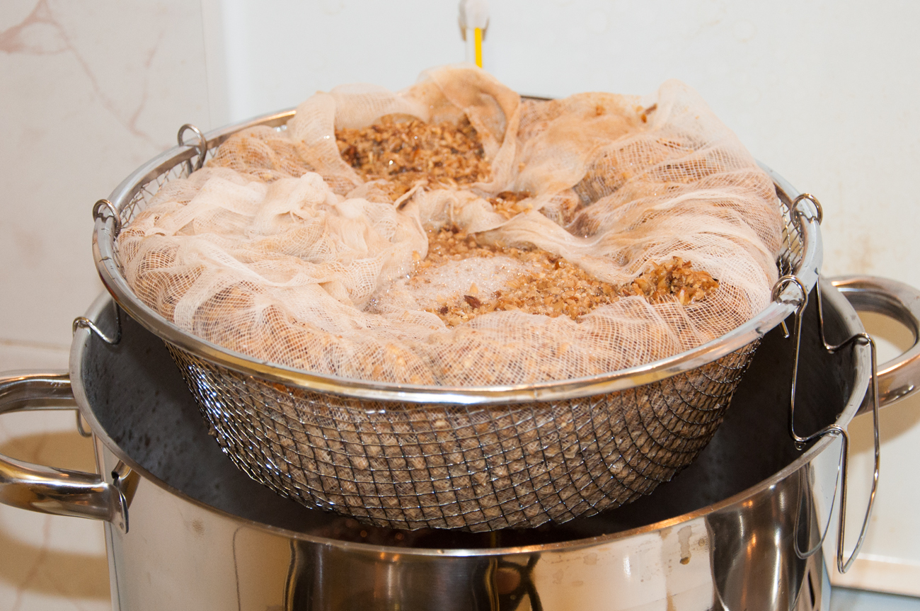 Прецеждането през памучен плат (торба) със сигурност няма да допусне никакви частици. Точно обратното се получава – дори и най-дребните частици остават в торбата и я затлачват, което пък забавя прецеждането.