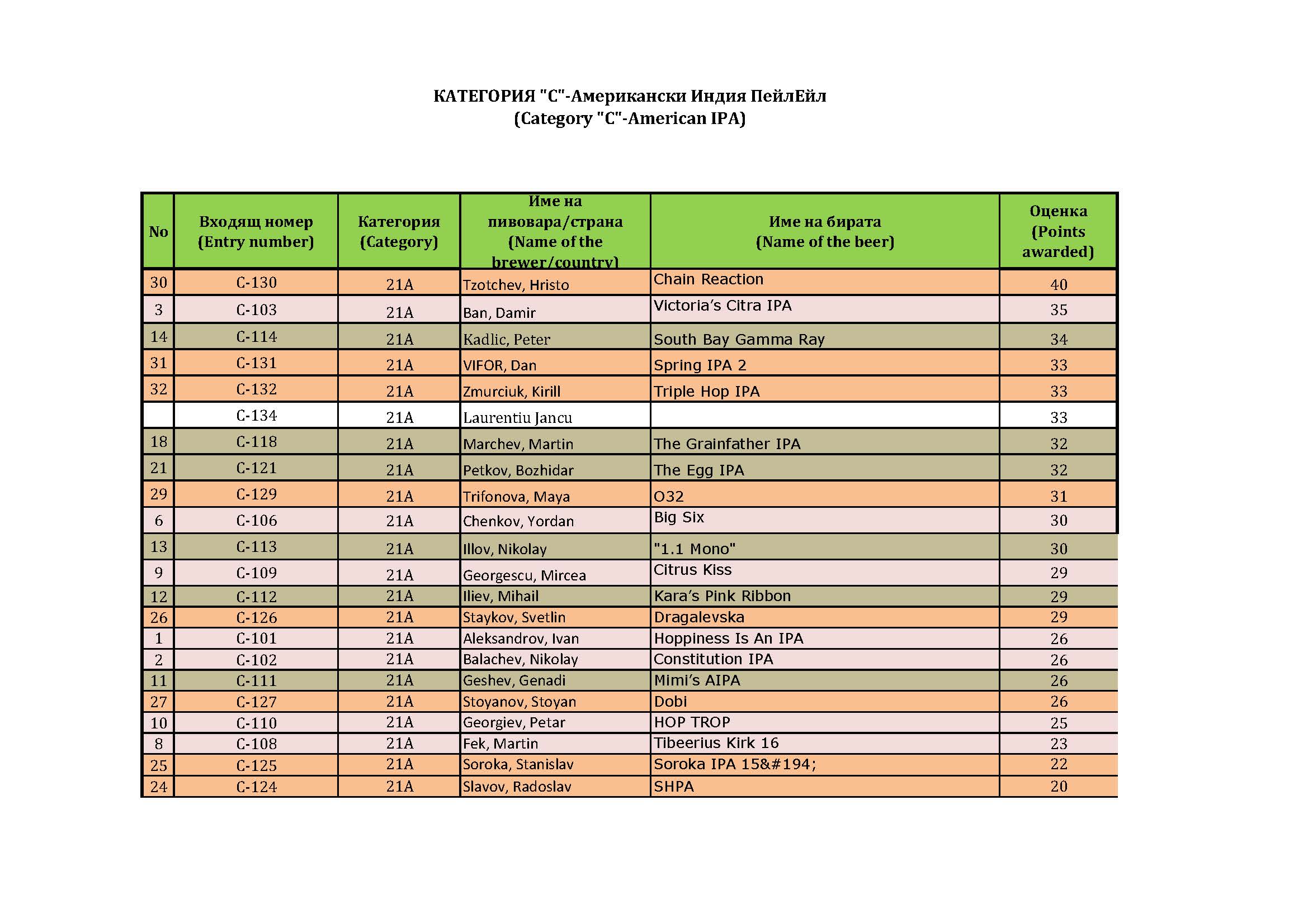 1. Пламен Георгиев - 1 бира.