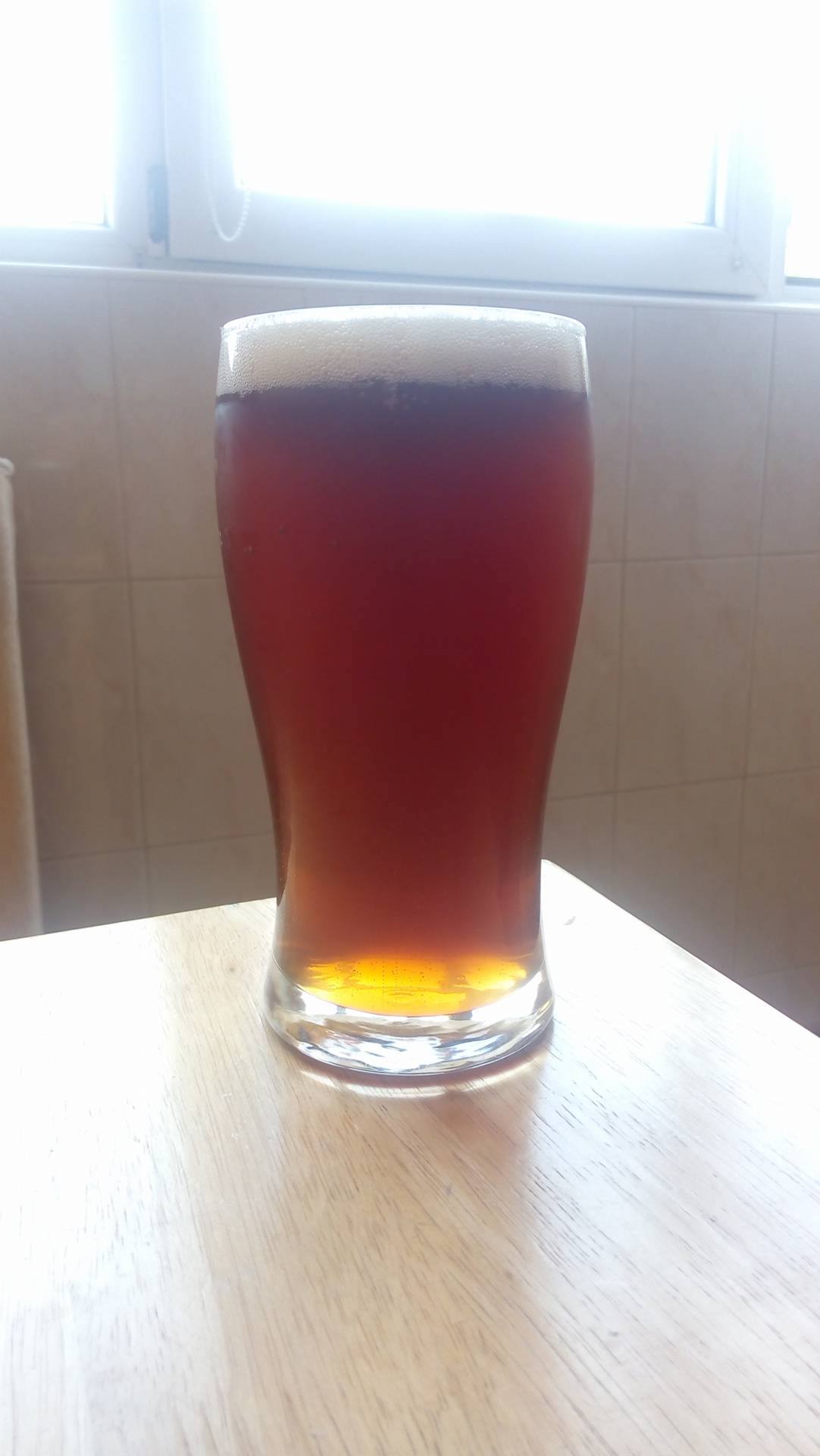 Резултатът: Само след една вечер в хладилника, бирата е наистина много добра - бистра, плътна, ароматна, горчивината се усеща много добре (поне 50 IBU), газировката е на перфектно ниво (газирана с добавена захар 6-7 гр. на литър), пяната е фина и остава по чашата. Определено е силна, след само една бира усещаш, че започва да ти става весело и отпуснато :lol: Като крайна плътност преди бутилиране, Тошко сподели, че е измерил 3,3 Плато, което с добавената захар за газировка дава 6,5-6,6% ABV! Определено бирата има потенциал и при отлежаване има на къде да се подобрява. Лошото е, че поне при мен може да не отлежи достатъчно :roll:
