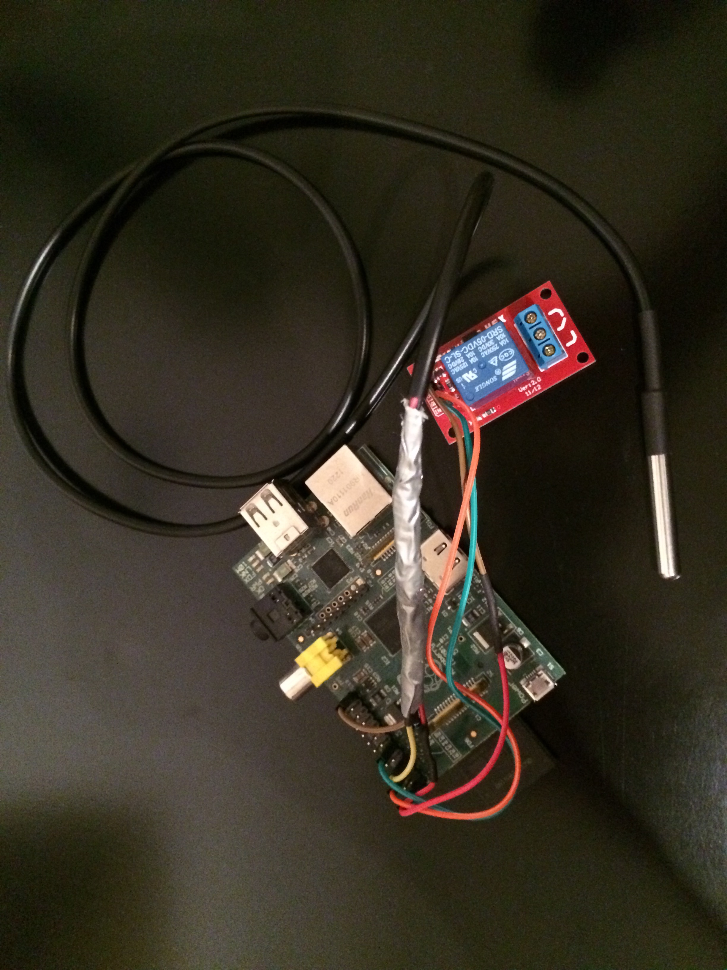 При третия опит реших да оптимизирам процеса и използвах бързовар включен през реле свързано с Raspberry Pi към което има и свързан термометър. Написах и малко програмче на Node.js, което следи температурата на водата и пуска/спира бързовара през релето когато е нужно.