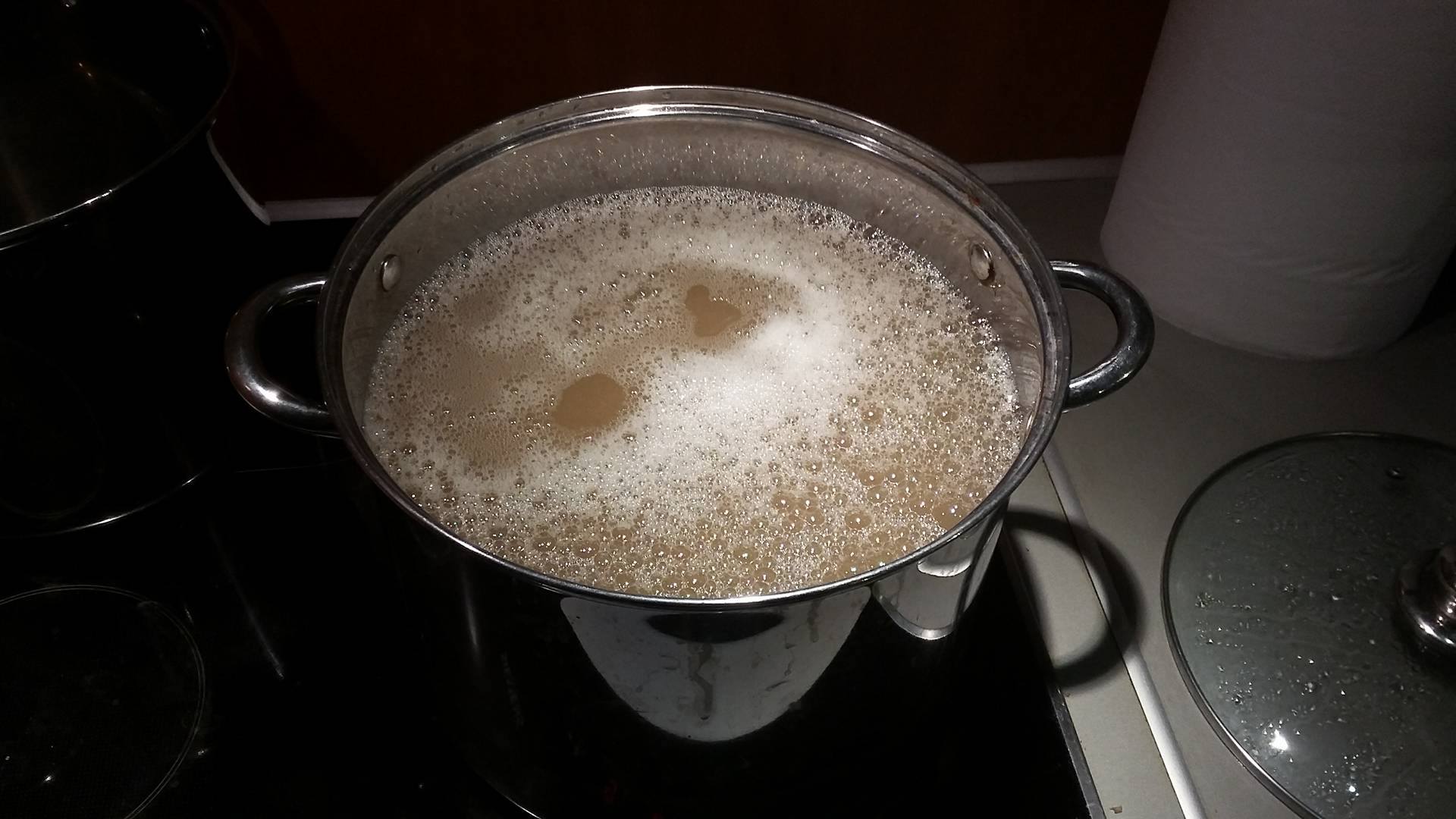 Ха парцалите са идеални :) - успял си да коагулираш белтъците, не забравяй да прецедиш с нещо преди ферментатира, защото тези парцали нямат място във ферментатора. После наръсваш дрождите отгоре и затваряш с водния клапън :)