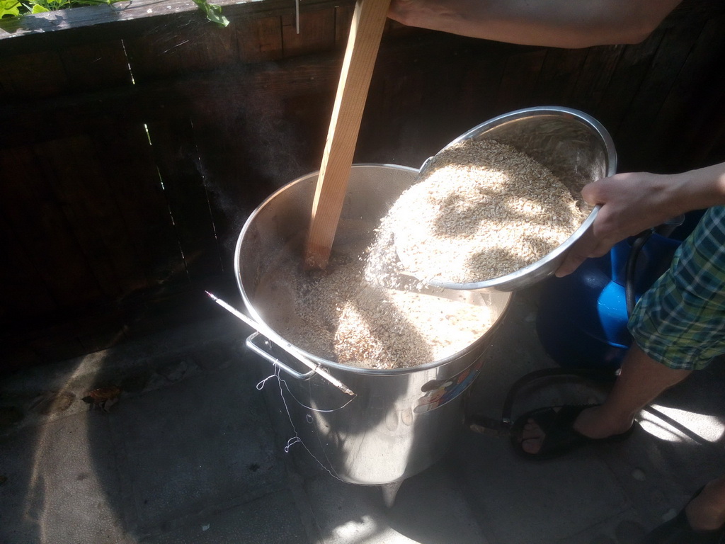 Еднотемпературно озахаряване на 68°C - 1 час с 26литра преварена вода. Мисля, че водата не трябваше да е преварена, за да е по-твърда.