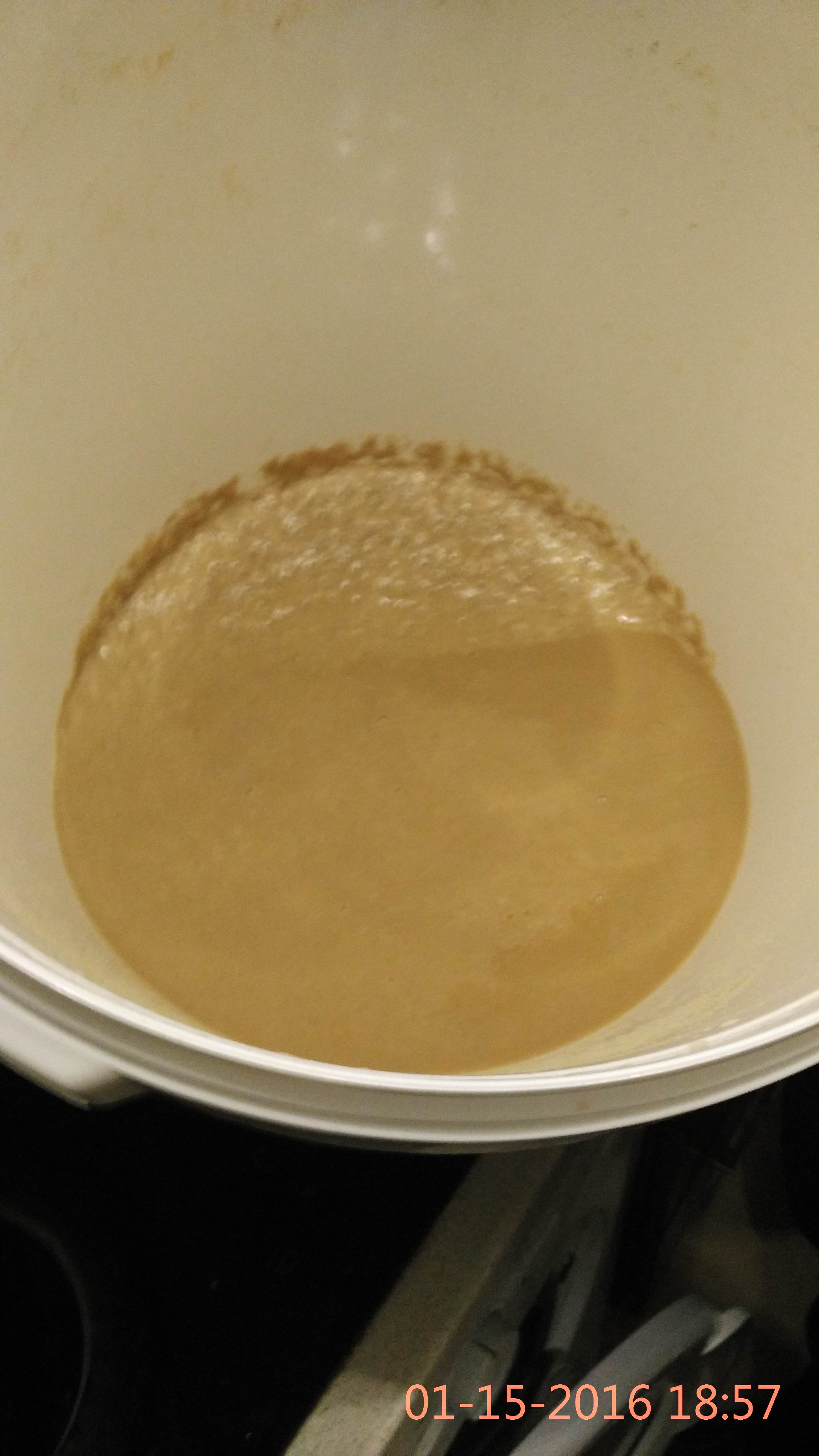 Сега за проблема. След като мина ферментацията (5 дни), и разливайки бирата установявам, че на дъното има над 4 литра със много гъста, светло кафява утайка, на вид се доближава на каша. Прилагам снимки.