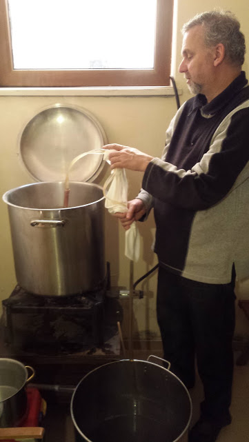 извиране на 12-13 л. течност, замерване на захарността - 15 Брикс!!!, но часовника на финала показваше 22ч 30 мин.
