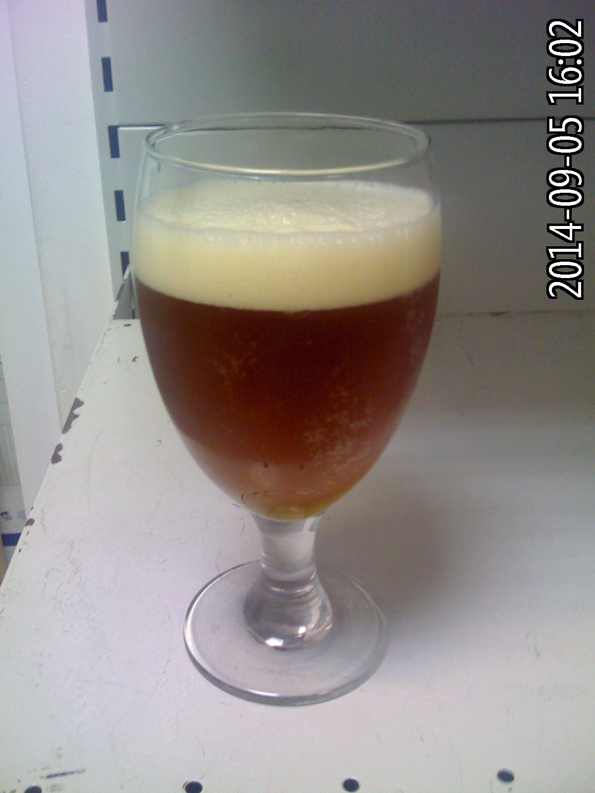 Ето и как изглежда след наливане в суха чаша при температура на бирата около 9 гр. 5 мин. след наливането.