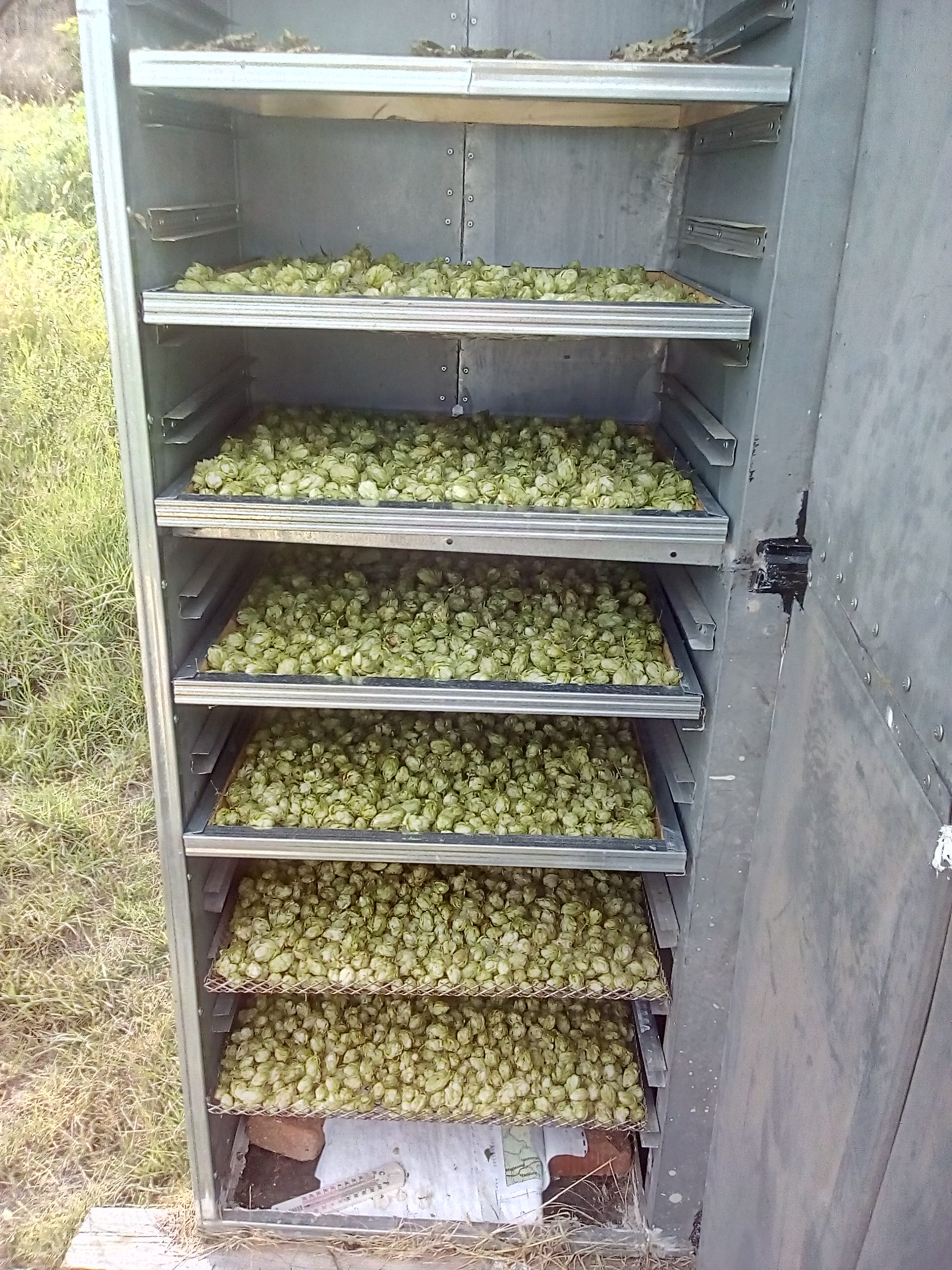 Ходих сутринта да помогна на един съсед да си занесе джибрите до ракиджийницата в съседното село и на 15 метра от ракиджийницата видях едно дърво, покрито цялото с хмел. Опитах го, беше значително по-горчив от хмеловете по оградите в наше село, а освен това - и ароматен, набрах малко за експерименти и го сложих в сушилнята. Мисля да опитам сингъл хоп ипа, пък ако няма аромат, ще е битер. Все ще я натаманя някак :mrgreen: