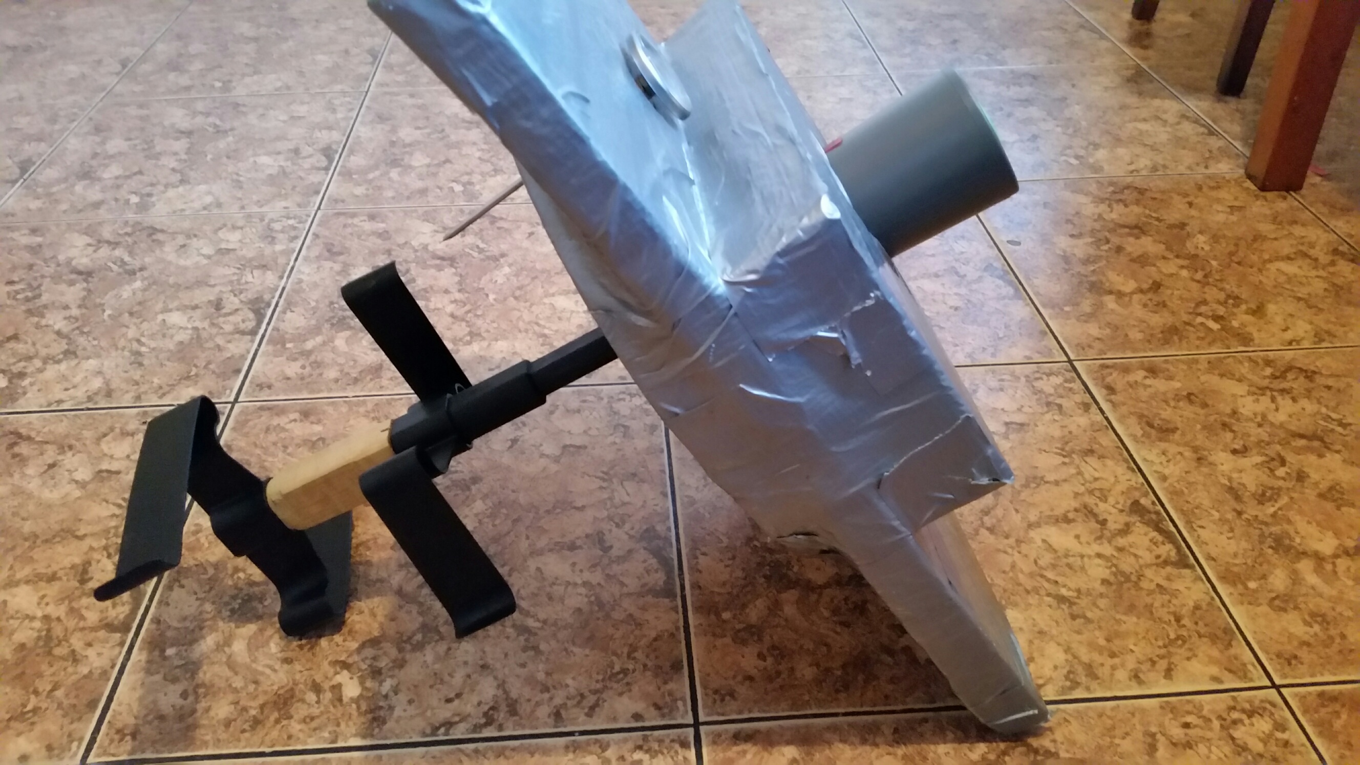 Това е изолация фибран омотана с дък тейп - сложен термометър и направено легло за батерията на бъркалката. Самата бъркалка е купена готова за 12-15 паунда през нета и с малко модифициране са сложени и двете лопатки. Издръжливостта на батерията е 120 минути, което е перфектно.