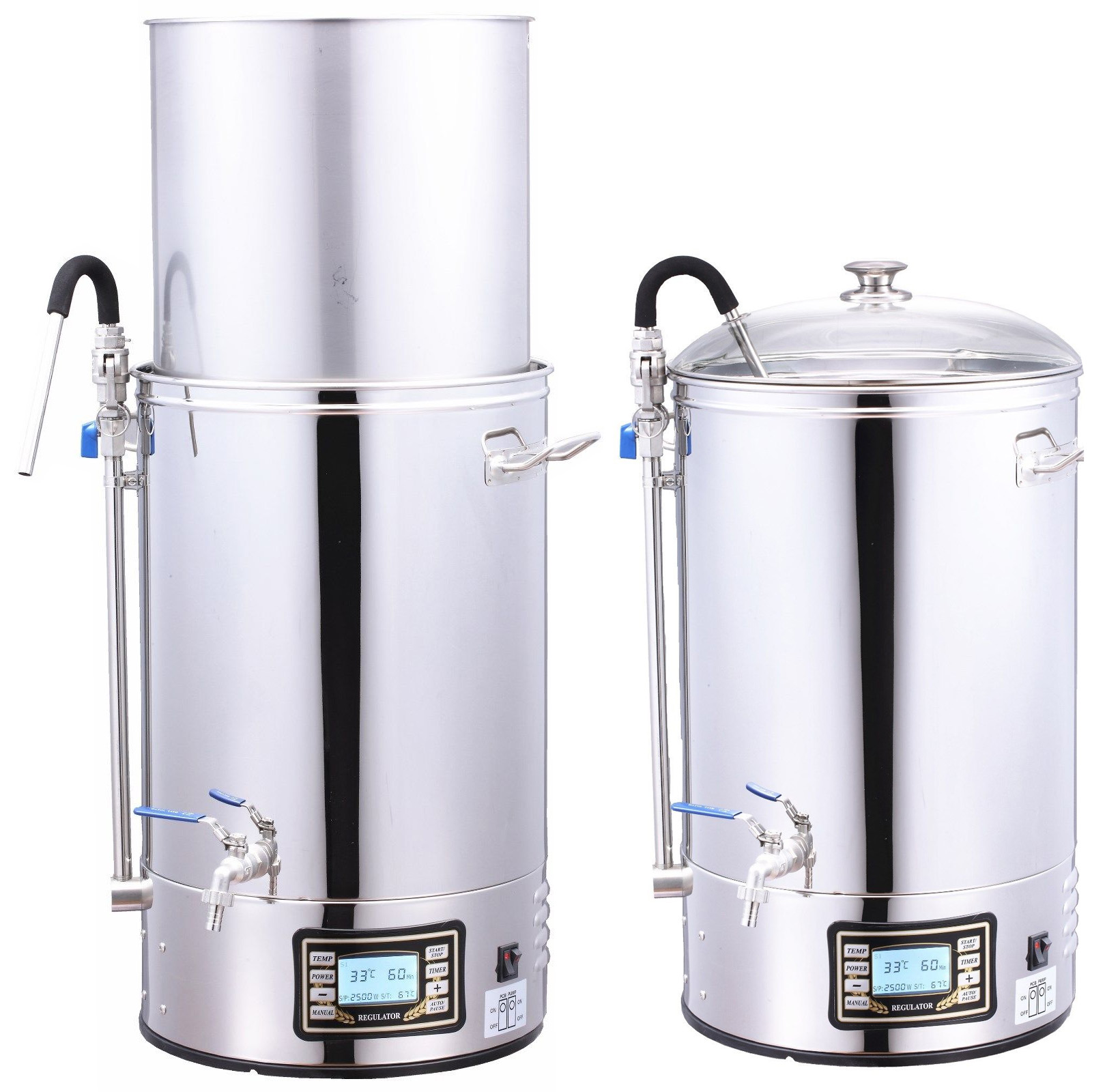 Аз варя с такава и имам над 20 варки, много съм доволен. Има тънкости, които научих по трудния начин - например водата за озахаряване е 6 л + кг. Малц х 2.7 или за 5 кг около 19.5 л. Иначе загаря и почват да се включват защити. Промиването е лесно и докато загрява за варене обикновено съм приключил, което пести време, ефективност докарвам висока. Трябва търпение след охлаждане при прехвърляне във ферментатора, защото филтъра се затлачва с хмел и други утайки и върви бавно, но за сметка на това бистро. Обикновено го накланям и на канелката съм монтирал маркуч, който влиза във ферментатора и чакам поне час. Има програмиране на температурните паузи и може да го оставиш без надзор и да си вършиш друга работа. Аз съм доволен.