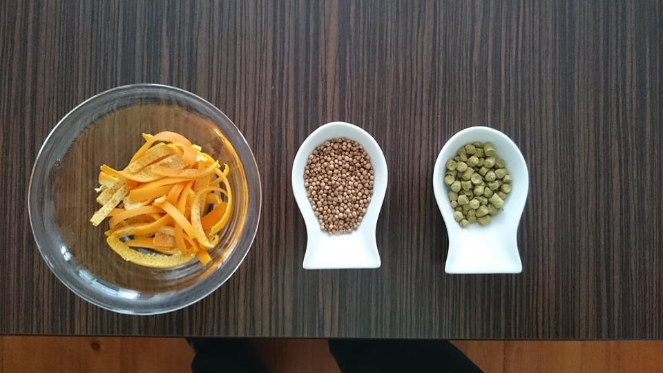 Затрих си записките при преместването, но това е снимката от вит-а който варих миналата година. Като знам колко са големи тези купички, куриандъра е поне 7-10гр. счукан. Варката е 20л. Получи се много добър клониг на Hoegaarden.