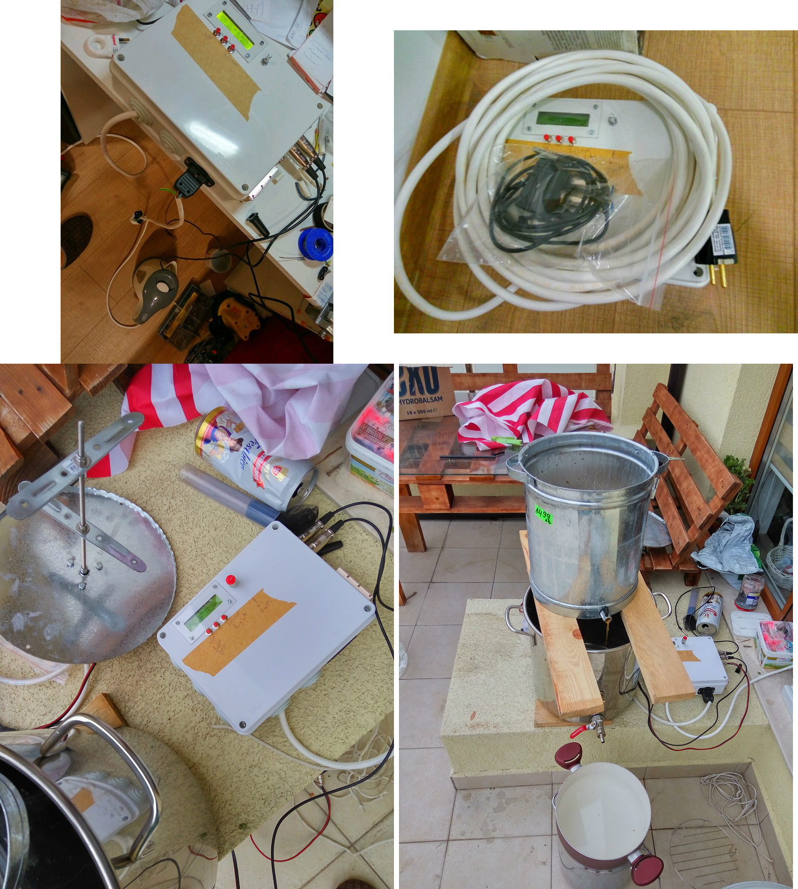 Машуването става в малкия казан(койте и лаутер тун за промивка), като се бърка с бъркалката от мотор на чистачки, който се управлява с PWM от контролера