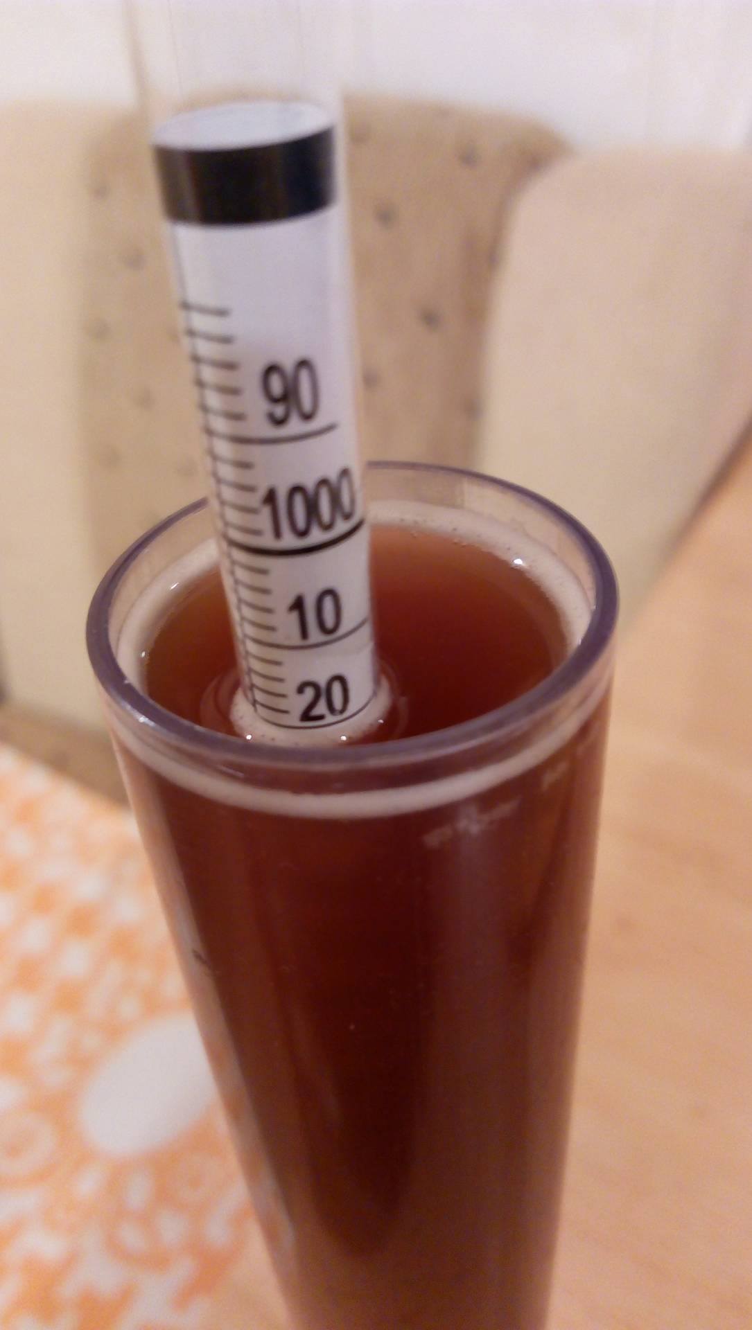 Тази вечер откалих барлито, сложих му дъбовия чипс в торбички с тежести, измерих бирата и с хидрометъра и с рефрактометъра и мога да кажа следното: