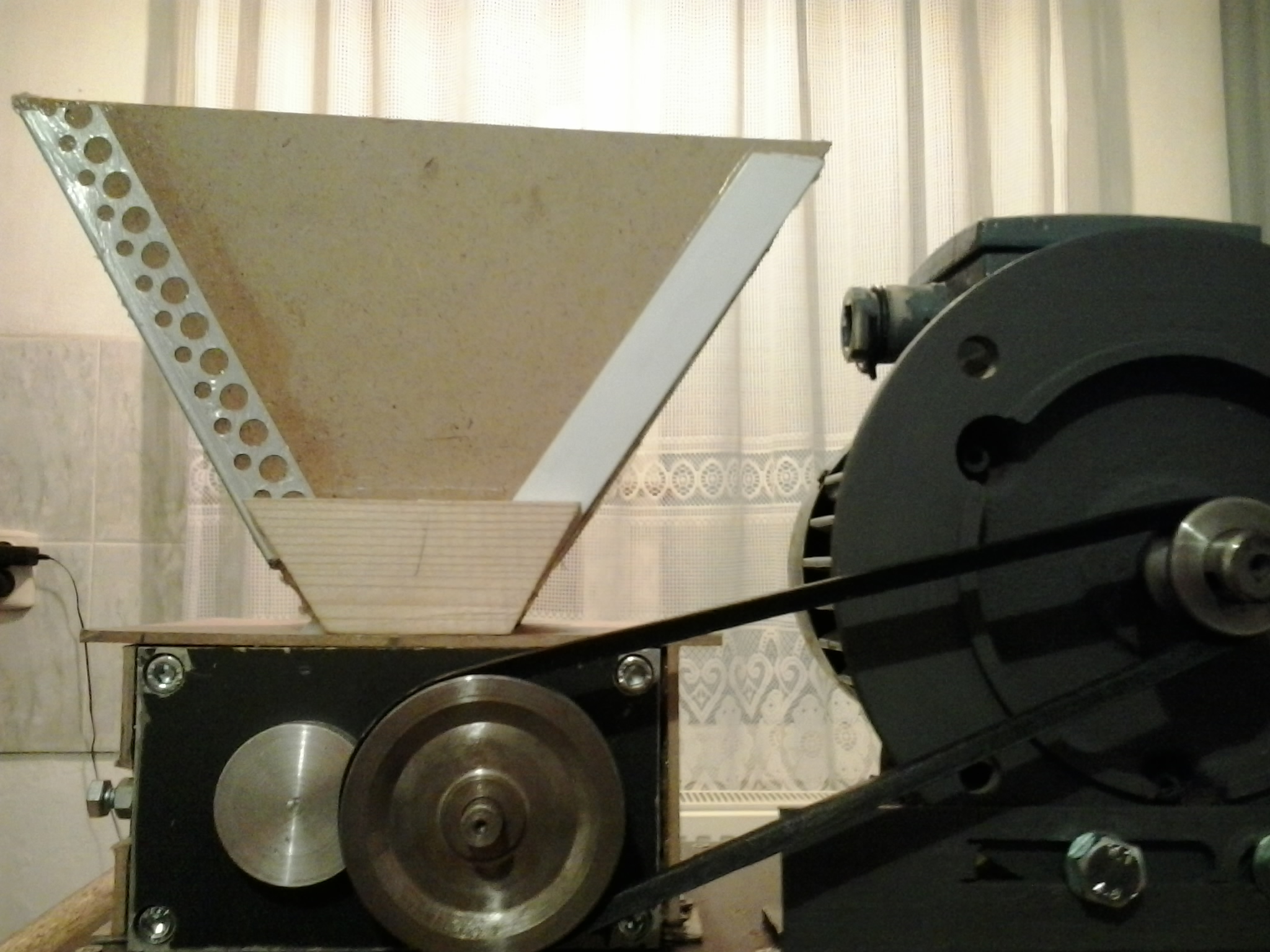 Мисля да сменя шайбата примерно със 120мм. Ще увелича и разстоянието между валовете. Иначе бункерчето ми има изходящ отвор със размери дължина приблизително дължината на валовете ( 90мм) и ширина около 9 мм. Да го намалявам ли този отвор?